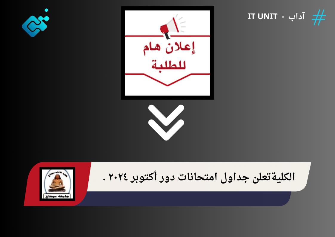 الكلية تعلن جداول امتحانات دور أكتوبر ٢٠٢٤ .