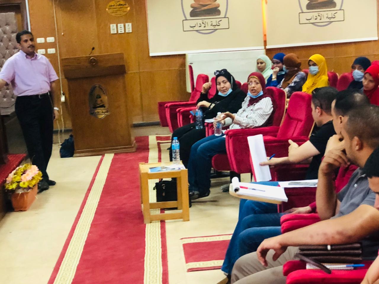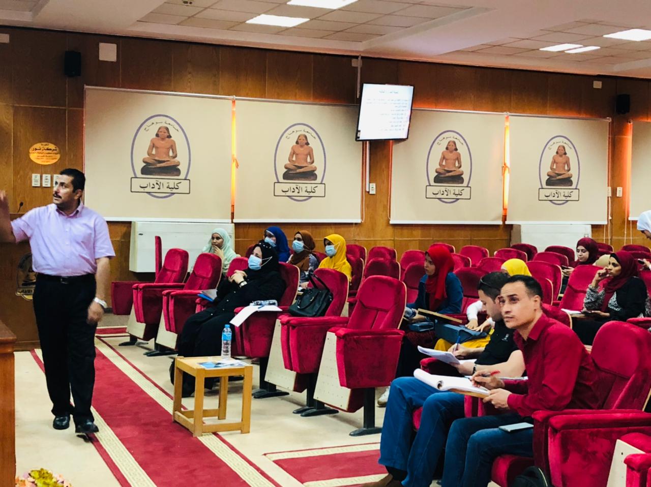 تواصل كلية الاداب اليوم الثالث علي التوالي تحت رعاية الاستاذ الدكتور كريم مصلح صالح عميد كلية الاداب في استمرار انفعاليات ورشةالعمل الخاصة بهيئة ضمان الجودة وذلك تحت عنوان شرح متطلبات استيفاء معايير الاعتماد البرامجي بقيادة الدكتور محمد توفيق وكيلالكلية لشؤون خدمة البيئة والمجتمع ومدير وحدة ضمان الجودة والدكتور وائل عبدالله نائب مدير وحدة ضمان الجودة
