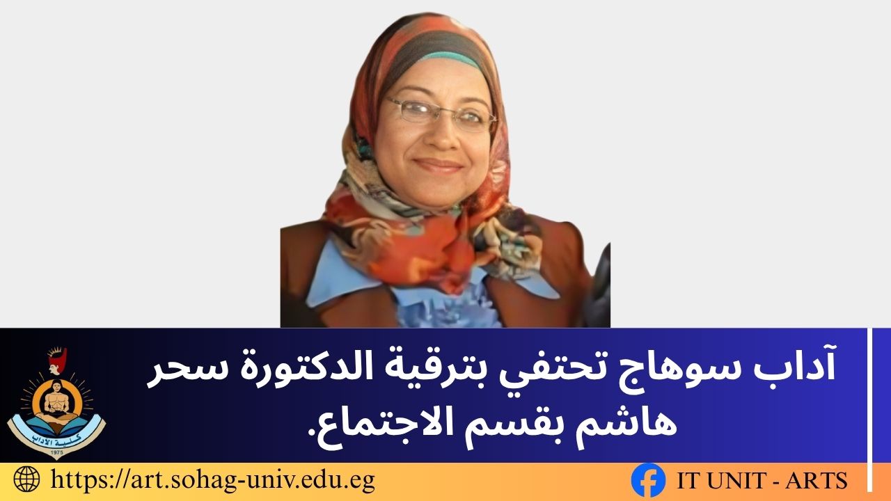آداب سوهاج تحتفي بترقية الدكتورة سحر هاشم بقسم الاجتماع.