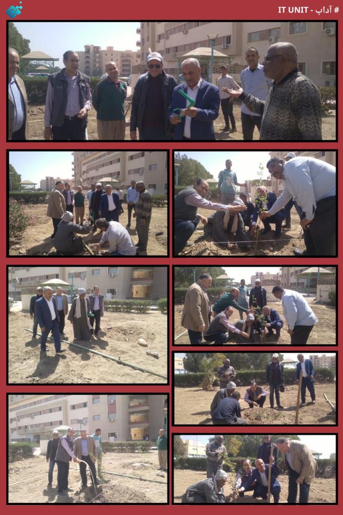 الدكتور محمد توفيق يقوم بزراعة ٤٠ شجرة مثمرة أمام مبني كلية الآداب .