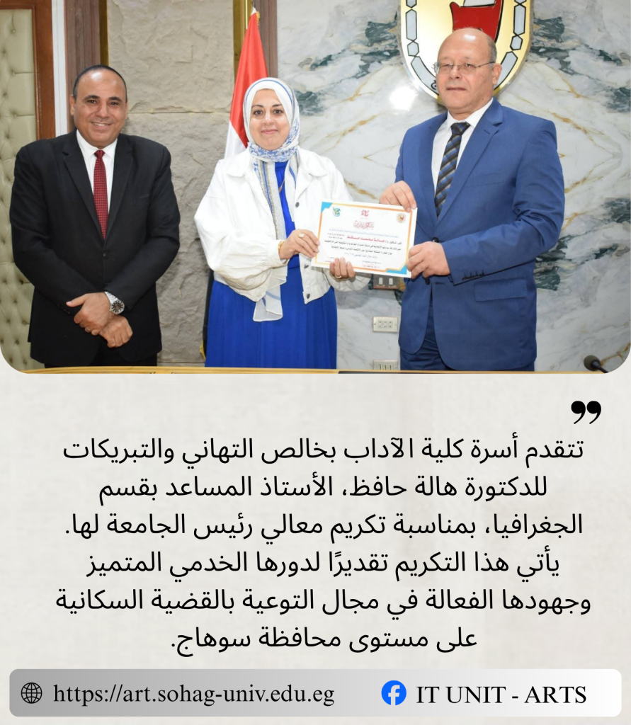 الرئيسية » جامعة سوهاج تُشيد بجهود الدكتورة هالة في مجال التوعية بالقضية السكانية.جامعة سوهاج تُشيد بجهود الدكتورة هالة في مجال التوعية بالقضية السكانية.بواسطة Dr. Ahmad Jaafar16 يوليو, 2025