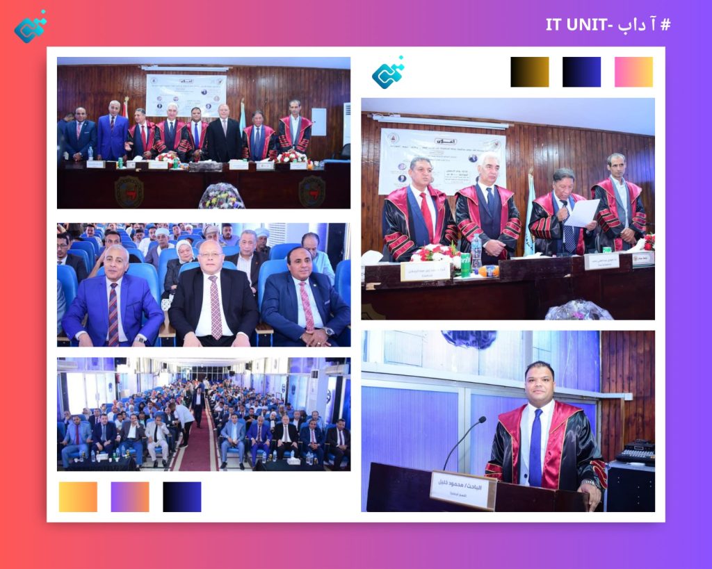 فعاليات المناقشة بالقاعة الزجاجية بمقر الجامعة القديم والتى شرفت بحضور رئيس الجامعة ونوابه .