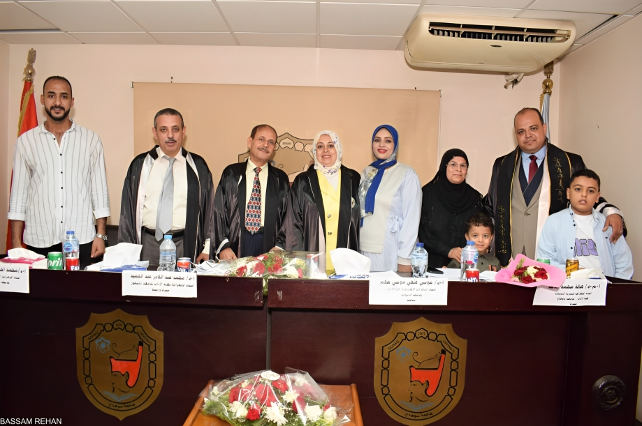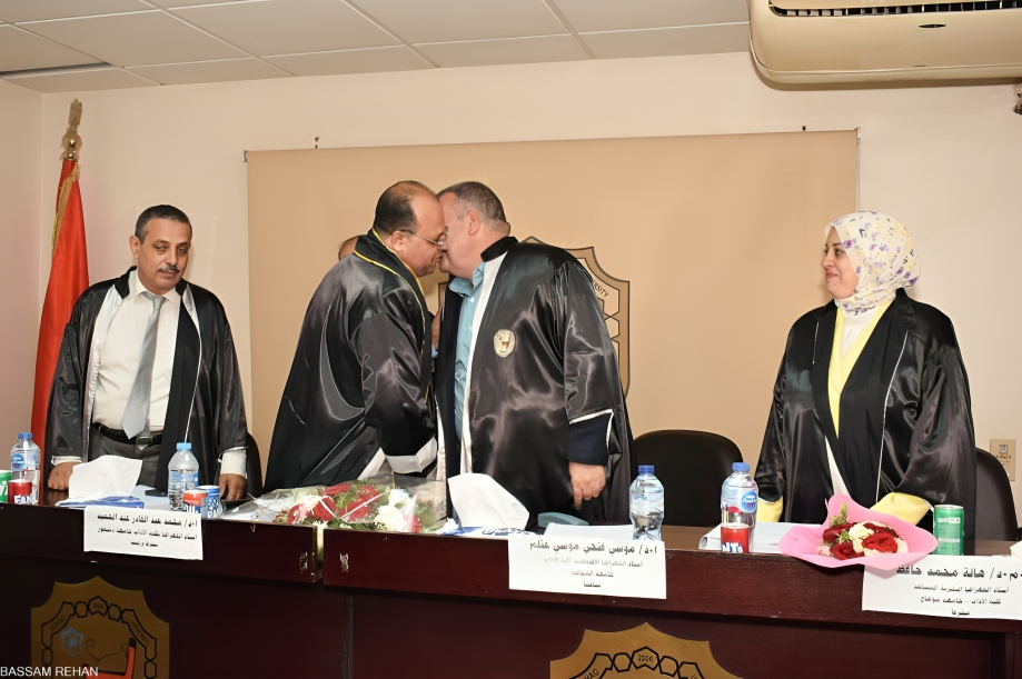 وتشكلت لجنة المناقشة والحكم من الأستاذ الدكتور محمد عبدالقادر، أستاذ الجغرافيا بكلية الآداب بجامعة دمنهور (رئيساً)، والأستاذة الدكتورة هالة محمد حافـظ، أستاذ الجغرافيا البشرية المساعد بكلية الآداب بجامعة سوهاج (مشرفاً)، والأستاذ الدكتور محمد أحمد إبراهيم ، أستاذ الجغرافيا الاقتصادية بكلية الآداب بجامعة جنوب الوادي (مناقشاً)، والأستاذ الدكتور موسى فتحي، أستاذ الجغرافيا الاقتصادية بكلية الآداب بجامعة المنوفية (مناقشاً).