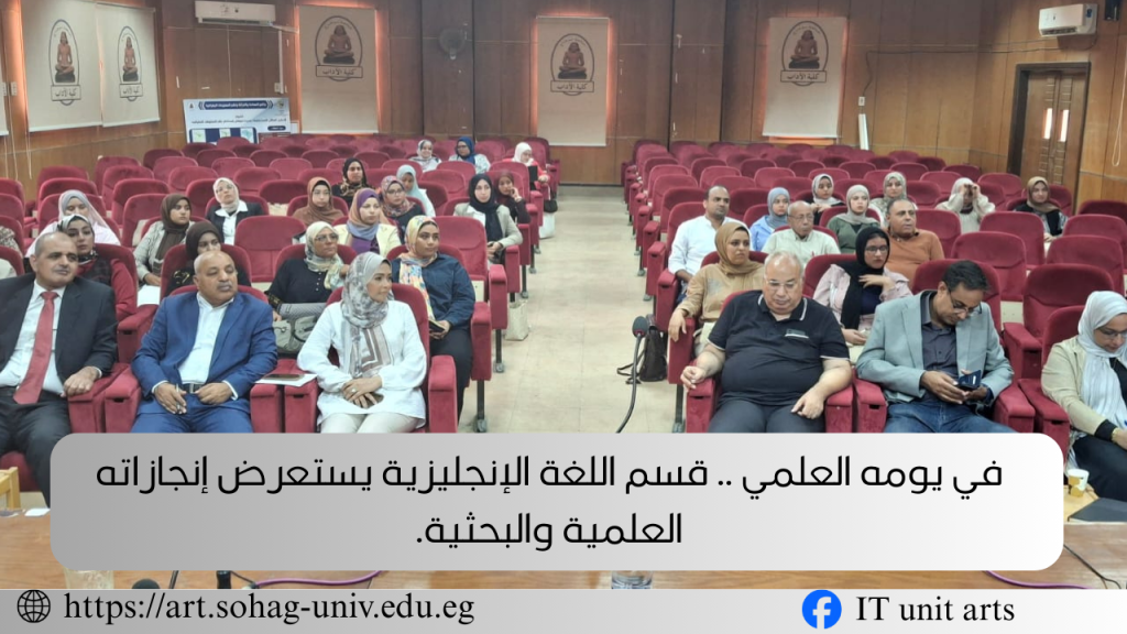 برعاية كريمة من معالي الأستاذ الدكتور حسان النعماني، رئيس جامعة سوهاج، وريادة السيد الأستاذ الدكتور محمد توفيق، عميد كلية الآداب، نظم قسم اللغة الإنجليزية بالكلية، اليوم الأربعاء الموافق العاشر من أكتوبر، يومه العلمي والثقافي والخدمي بقاعة المناقشات. وجاءت الفعالية تحت إشراف الأستاذ الدكتور بهاء عثمان، وكيل الكلية لشؤون خدمة المجتمع وتنمية البيئة، وبدعوة من الدكتور سمير عبد النعيم، رئيس القسم، وشهدت حضورًا لافتًا من أعضاء هيئة التدريس والهيئة المعاونة بالكلية، وخريجي القسم، وطلاب الدراسات العليا، بالإضافة إلى زملاء من أقسام علمية أخرى.