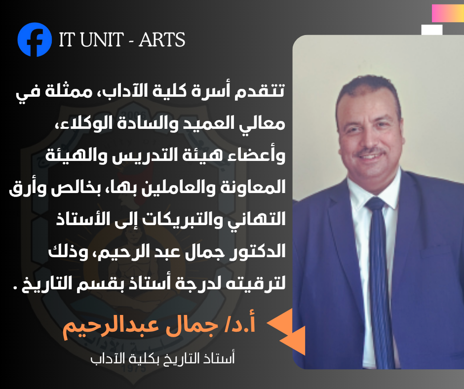 الرئيسية » كلية الآداب تحتفي بترقية الدكتور جمال عبد الرحيم إلى درجة الأستاذية في التاريخ.كلية الآداب تحتفي بترقية الدكتور جمال عبد الرحيم إلى درجة الأستاذية في التاريخ.بواسطة Dr. Ahmad Jaafar31 مايو, 2025