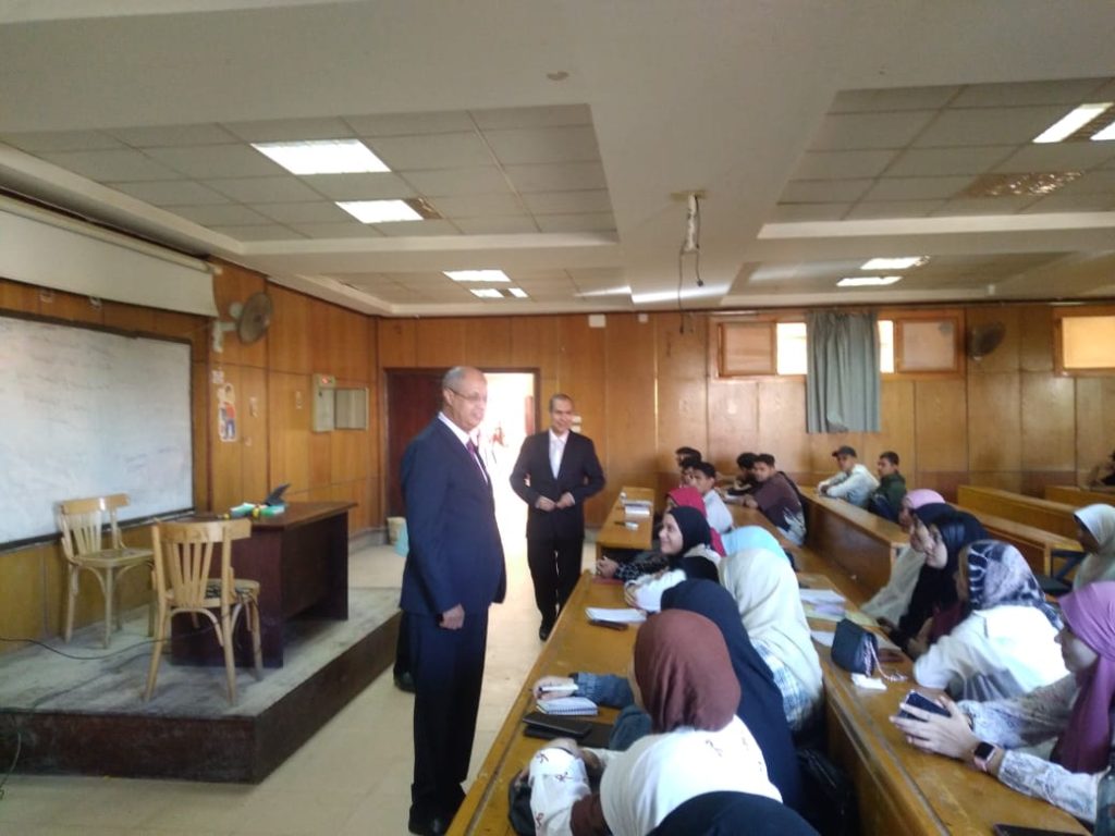 وفي السياق ذاته، تضمنت جولة نائب رئيس الجامعة مرافق الكلية المختلفة، حيث رافقه الأستاذ الدكتور محمود مراد، وكيل الكلية لشؤون التعليم والطلاب، وقاما بتفقد القاعات الدراسية والمعامل والمكتبات. وخلال الجولة، اطمأن سيادته على انتظام المحاضرات والتجهيزات الأكاديمية والخدمية المقدمة للطلاب، كما التقى بعدد من أعضاء هيئة التدريس والطلاب للاستماع إلى آرائهم ومقترحاتهم حول سبل تطوير العملية التعليمية. وقد عكست هذه الزيارة حرص إدارة الجامعة على ضمان استدامة جودة التعليم الأكاديمي، بما يتماشى مع الأهداف الاستراتيجية للجامعة في تخريج كفاءات مؤهلة لسوق العمل.