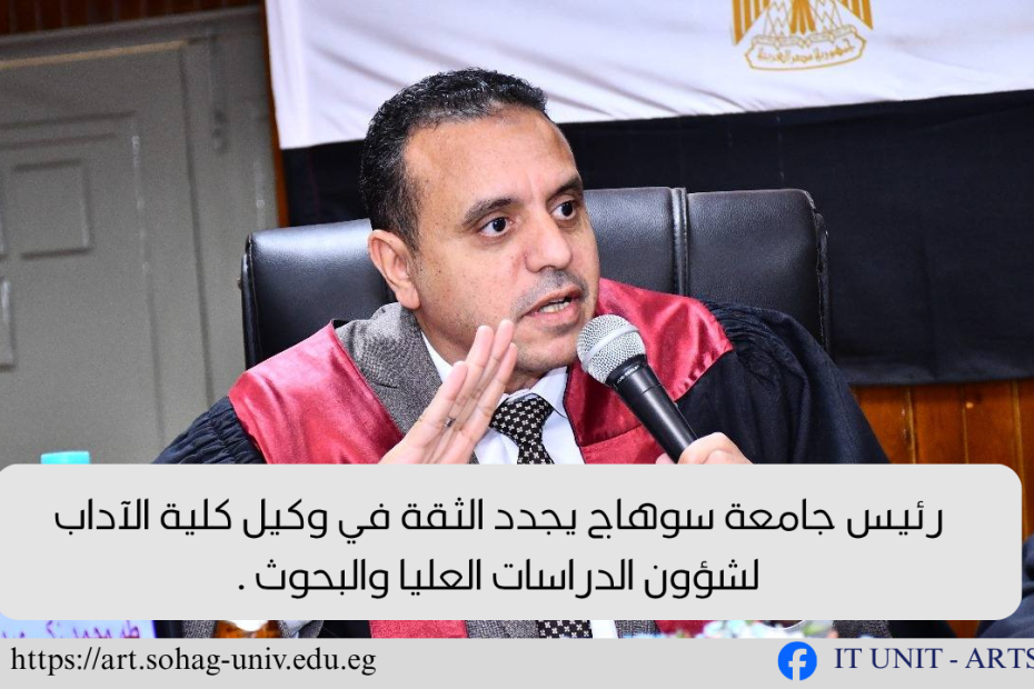 تحت رعاية معالي الأستاذ الدكتور حسان النعماني، رئيس جامعة سوهاج، ودعم السيد الأستاذ الدكتور محمد توفيق، عميد كلية الآداب، استقبلت كلية الآداب أمس وفد من فريق تقييم جائزة مصر للتميز الحكومي، برئاسة السيد الأستاذ الدكتور أ.د. خالد عمران، نائب رئيس الجامعة لشؤون خدمة المجتمع وتنمية… اقرأ المزيد »سفراء التميز يقودون الجهود: “آداب سوهاج” تفتح أبوابها للجنة التقييم في المرحلة النهائية لمسابقة التميز المؤسسي.
