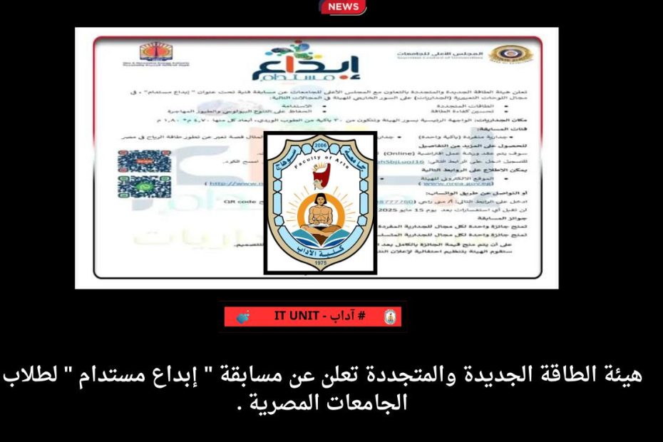 هيئة الطاقة الجديدة والمتجددة تعلن عن مسابقة ” إبداع مستدام ” لطلاب الجامعات المصرية .