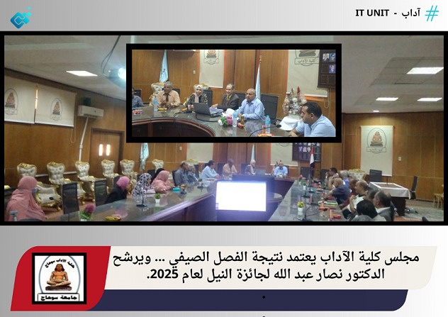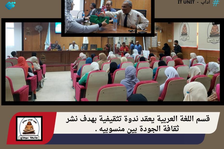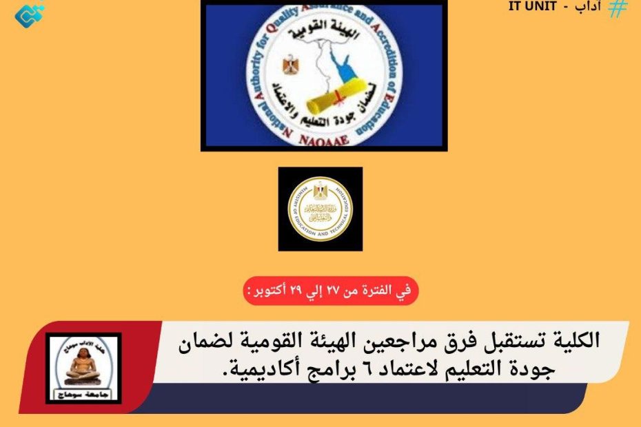 فريق الهيئة القومية لضمان جودة التعليم والاعتماد يبدء فعاليات زيارته لكلية الآداب لاعتماد 6 برامج أكاديمية . استقبلت كلية الآداب فريق المراجعين الخارجيين بالهيئة القرمية لضمان جودة التعليم والاعتماد من أجل اعتماد ستة برامج أكاديمية ، وهي برامج : اللغة العربية وآدابها ، والدراسات الإسلامية… اقرأ المزيد »فريق الهيئة القومية لضمان جودة التعليم والاعتماد يبدء فعاليات زيارته لكلية الآداب لاعتماد 6 برامج أكاديمية .