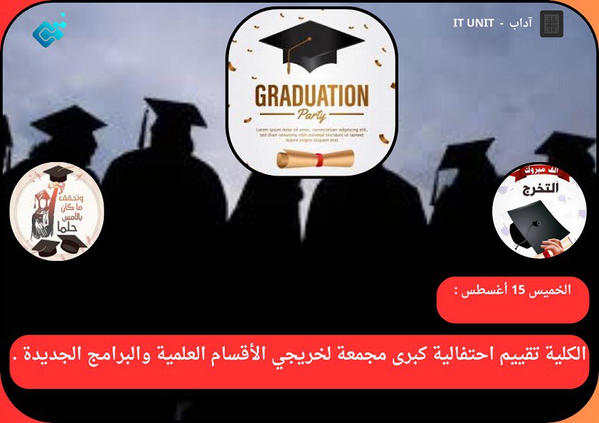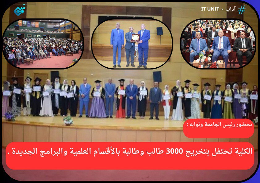 بحضور رئيس الجامعة ونوابه : الكلية تحتفل بتخريج 3000 طالب وطالبة بالأقسام العلمية والبرامج الجديدة .