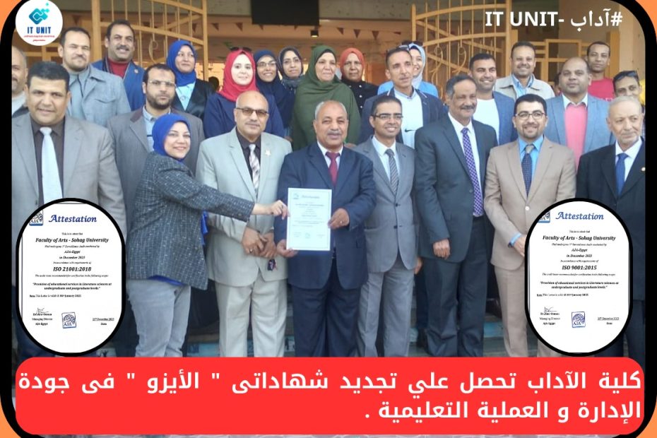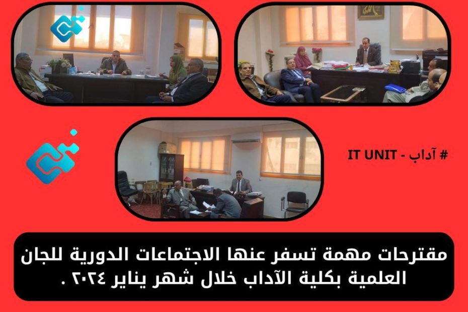 خلال اجتماعه الدوري : مجلس كلية الآداب يطالب بتعظيم دور الأقسام … والبدء في وضع تصور لمؤتمر دولي . عقد مجلس كلية الآداب اجتماعه الدوري عن شهر يناير 2024 ، برئاسة الدكتور محمد توفيق عميد الكلية ، وبحضور الدكتور محمود مراد وكيل الكلية لشؤون التعليم والطلاب ، والدكتور… اقرأ المزيد »خلال اجتماعه الدوري : مجلس كلية الآداب يطالب بتعظيم دور الأقسام … والبدء في وضع تصور لمؤتمر دولي .