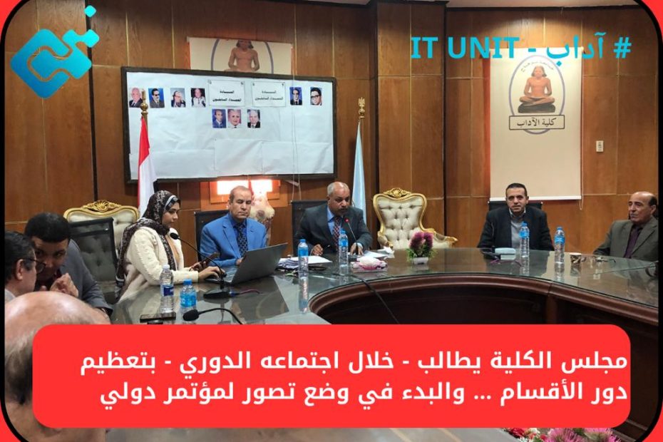 خلال اجتماعه الدوري : مجلس كلية الآداب يطالب بتعظيم دور الأقسام … والبدء في وضع تصور لمؤتمر دولي .