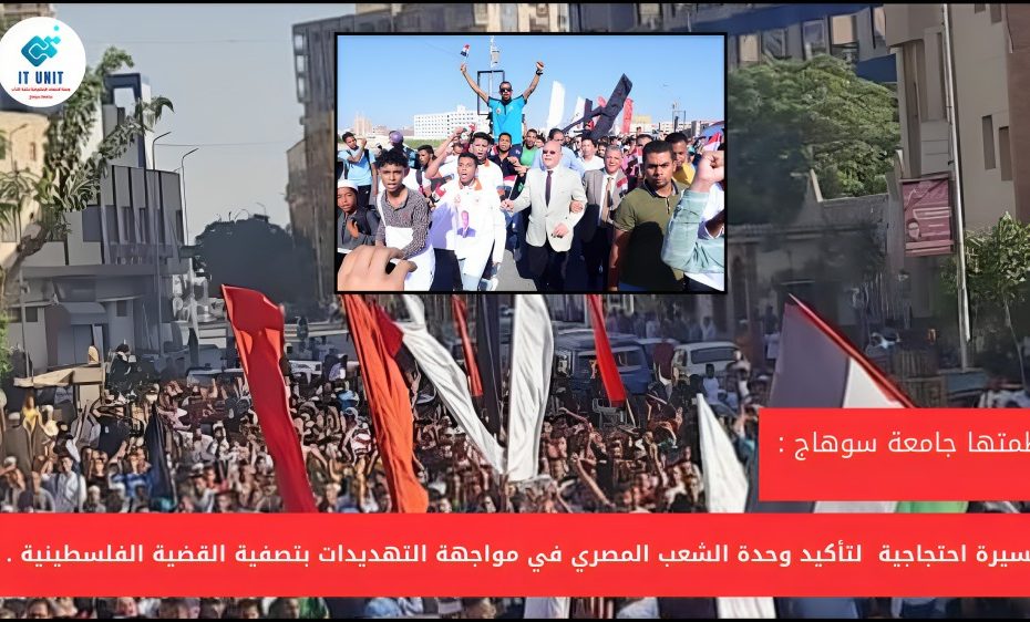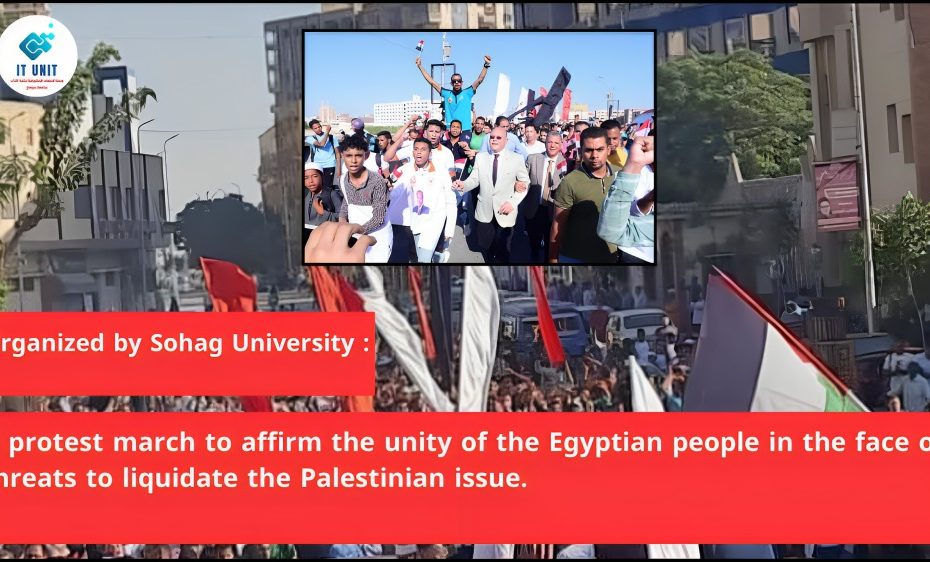 نظمتها جامعة سوهاج : مسيرة احتجاجية لتأكيد وحدة الشعب المصري في مواجهة التهديدات بتصفية القضية الفلسطينية .