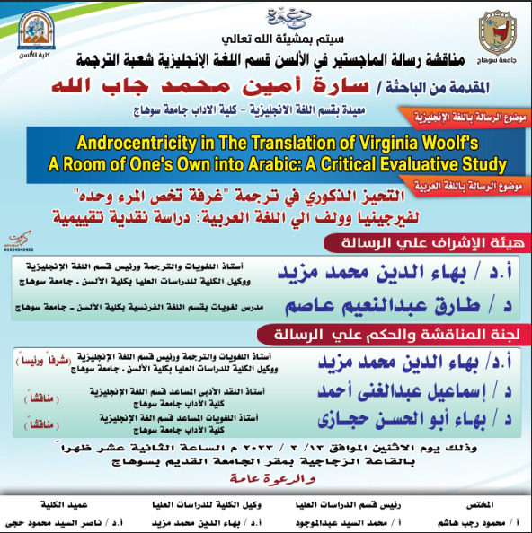 تحت رعاية الدكتور مصطفي عبد الخالق رئيس جامعة سوهاج ، والدكتور محمد توفيق عميد الكلية ، أقامت كلية الآداب حفلاً لتأبين العالمين الجليلين المرحوم الدكتور محمد محمد عثمان مؤسس قسم الدراسات الاسلامية بالكلية ، والمرحوم الدكتور أحمد يوسف خليفة استاذ الادب والنقد بقسم اللغة العربية… اقرأ المزيد »الكلية تنظم احتفالية تأبين لعالمين جليلين تقديراً ووفاءً لمسيرتهما العلمية
