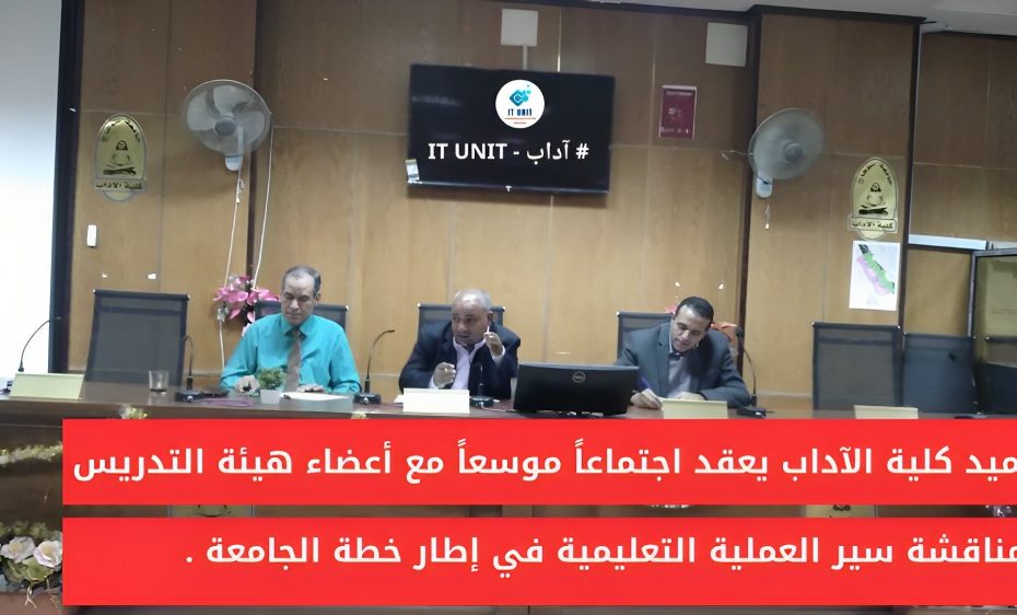 عميد كلية الآداب يعقد اجتماعاً موسعاً مع أعضاء هيئة التدريس لمناقشة سير العملية التعليمية في إطار خطة الجامعة .