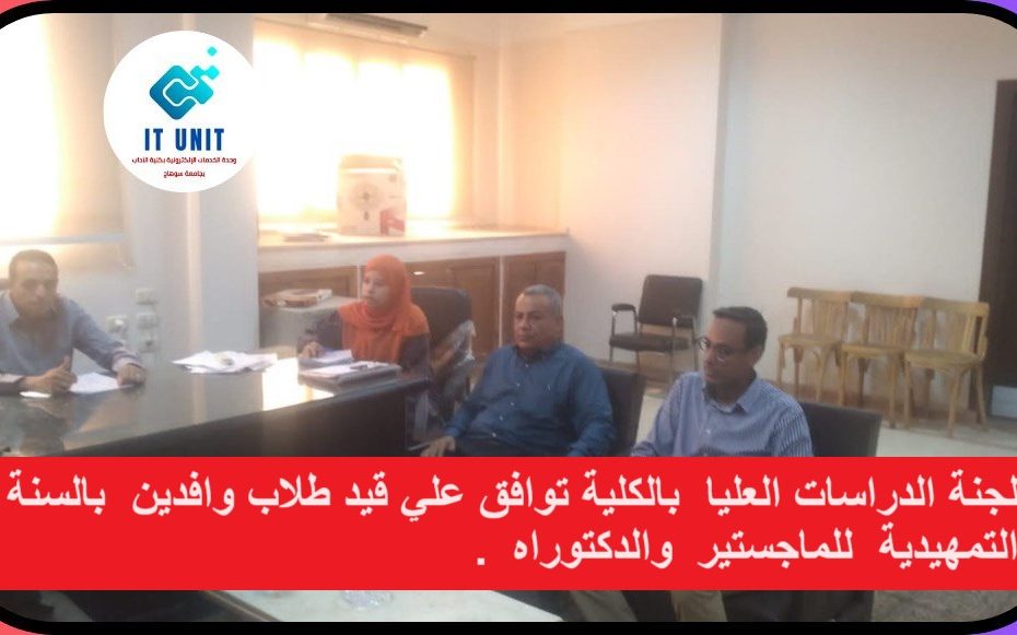 لجنة الدراسات العليا بالكلية توافق علي قيد طلاب وافدين بالسنة التمهيدية للماجستير والدكتوراه .