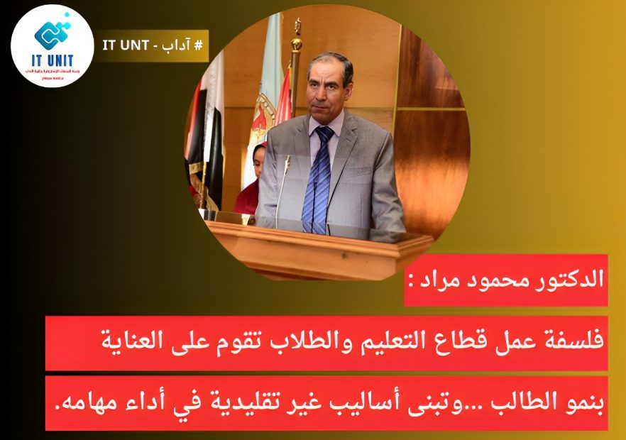 الدكتور محمود مراد : فلسفة عمل قطاع التعليم والطلاب تقوم على العناية بنمو الطالب …وتبنى أساليب غير تقليدية في أداء مهامه . يُعد قطاع شؤون التعليم والطلاب من القطاعات المهمة والركائز الثابتة في الكلية بصفة خاصة والجامعة بصفة عامة، نظراً لارتباطه الوثيق بالطلاب الذين أنشئت الجامعة من أجلهم ،… اقرأ المزيد »الدكتور محمود مراد : فلسفة عمل قطاع التعليم والطلاب تقوم على العناية بنمو الطالب …وتبنى أساليب غير تقليدية في أداء مهامه .